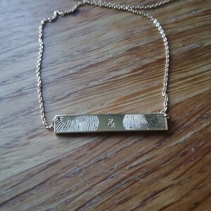 The necklace was incredible! And SUPER fast shipping! I asked for two finger prints of myself and sons and she accommodated no problem. It’s exactly what I pictured! Thank you so much!