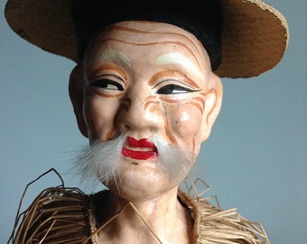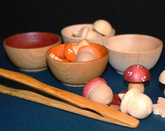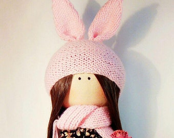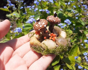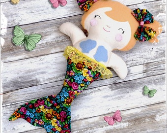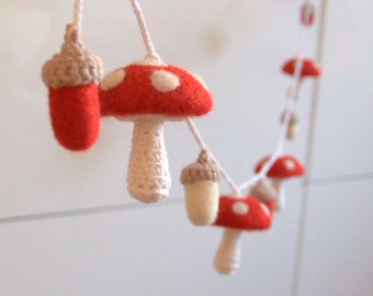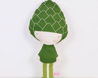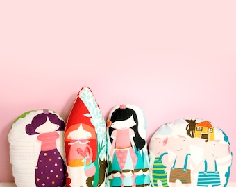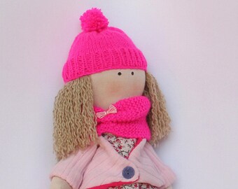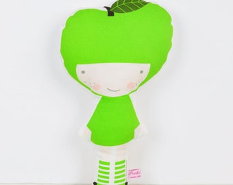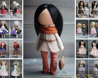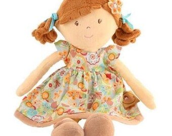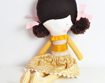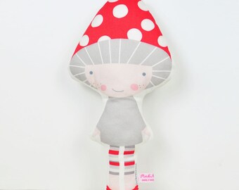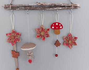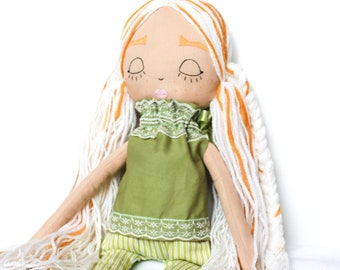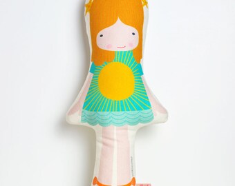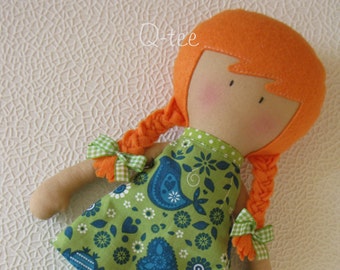 Autumn cloth doll in orange and brown with leaves, mushrooms & acorns