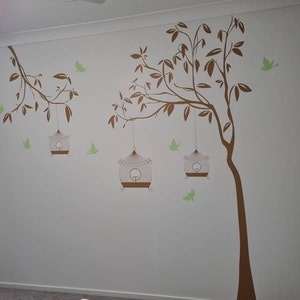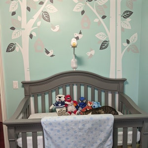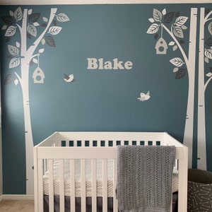 Children Wall Decal Wall Sticker - Custom Name Birch Trees with Birds and Birdhouses - PLWD040L
