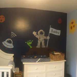 My 5 year old LOVES his space decals. The colors were bright and beautiful and downright adorable. The decals were large so i took my time cutting them out and taping them were I wanted before applying them to the walls. Delivery was as soon as could be expected, as we all know Covid has disrupted everything. Seller answered the few questions i had right away and was helpful. Next project i have I’m Looking here first!