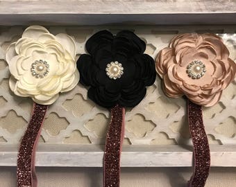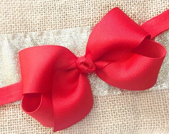 Jersey Knit Head Wrap Headband-Silver/Ivory Headband-Adjustable Headband for Babies, Toddlers, and Little Girls-Christmas Headband