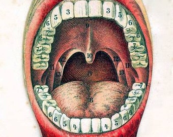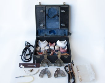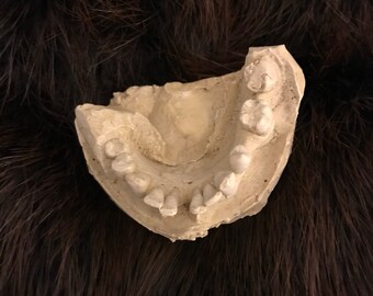 Vintage Plaster Dental Mold Bottom Teeth Pastel Gold Tooth Green Medical Figurine