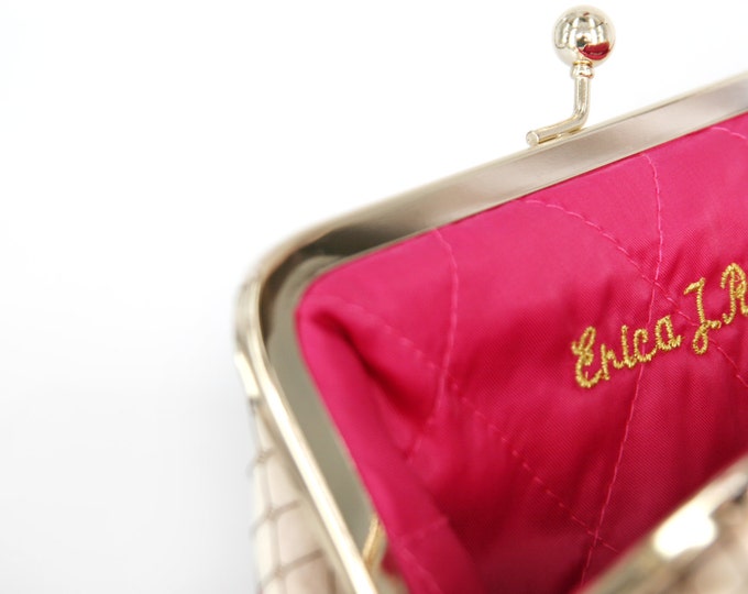 Personalized Custom Metallic Gold Embroidery inside Bridal or Bridesmaids Clutch Bag - 1 lines