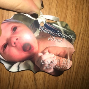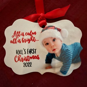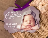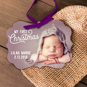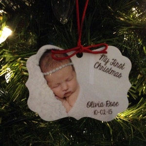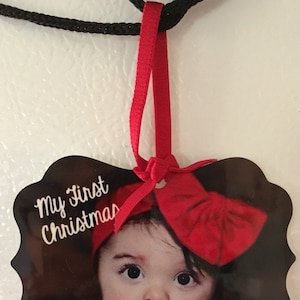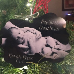 baby's first christmas photo ornament - personalized photo 1st christmas wood or metal baby's first christmas photo ornament MBO-008