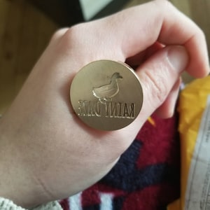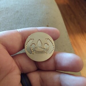 Wow. Wow. Wow. WOW! I never would have thought my design would ever be able to fit in a seal stamp let alone ALL the details in it! Very well crafted and excellent! The handle is comfortable and the weight of the stamp is perfect! Definitely recommend this for anyone who needs a custom seal stamp made!