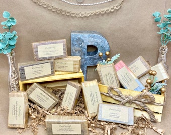 A set of four, one ounce bars of our premium soaps in a sample set. Complete with a sliding sleeve and tied bouquet of wildflowers, this set is gift-ready and swoon worthy.