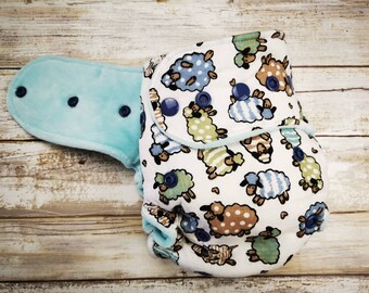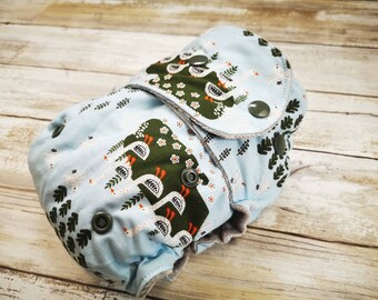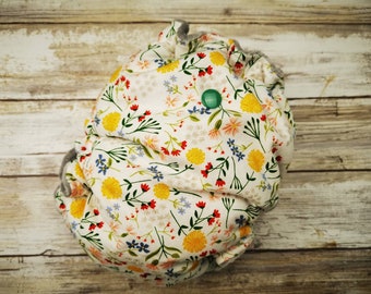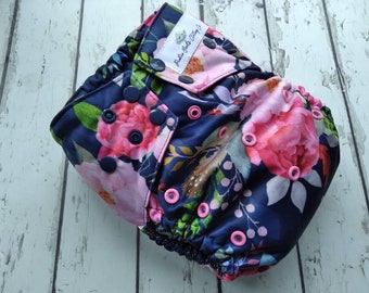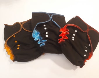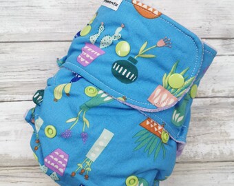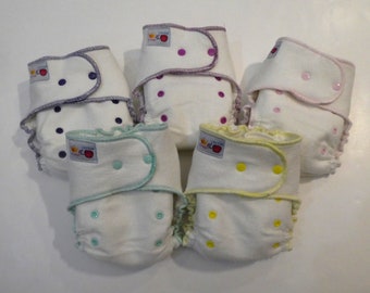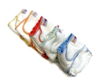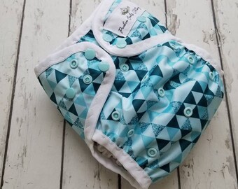 organic fitted cloth diaper - IN STOCK - rainbow heart waves - snap down rise - turned and topstitched