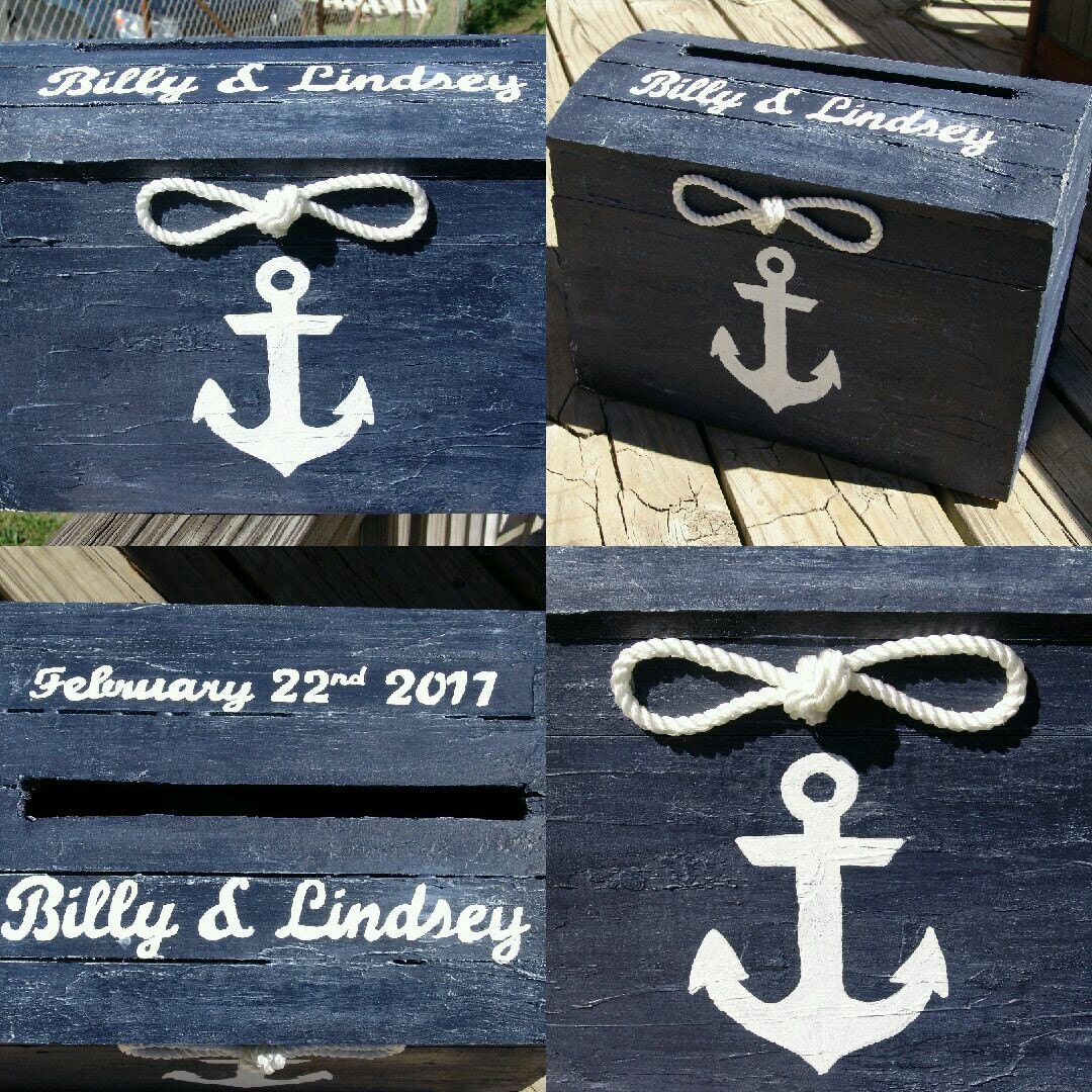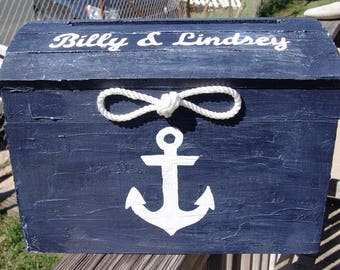 Each chest comes with optional hand painted Personalized Text. The chest is available with your choice of (up to) two lines of hand painted white text (names & date, or Happy Anniversary/ date, Bride & Groom/ Wedding location etc) The text is painted in **WHITE, unless otherwise requested. **Happy to paint text or anchor in any color- just leave a Note to Seller with your preference.