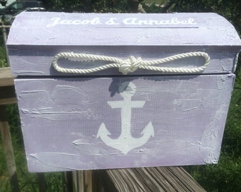 Personalized Lavender Nautical Themed Beach Wedding Card Box Treasure Chest Unity Knot Rope Hand Painted Anchor Birthday Party Events Raffle