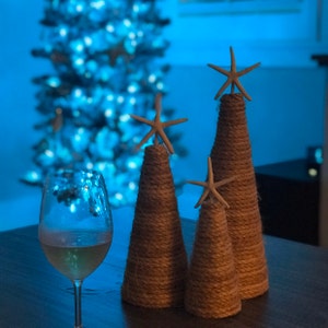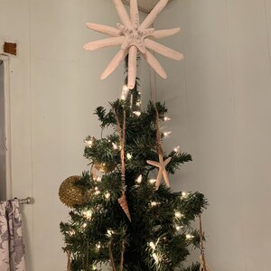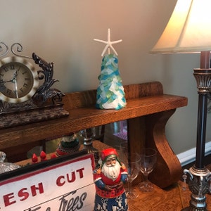 Seaglass Tree White Finger Starfish Top Choice of Color Coastal Christmas Topiary Sea Glass Tabletop Mantle Beach Display Nautical Decor -