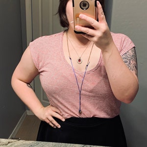 The other "versions" available on here for a much lower price are mass produced drop-shipped rip offs of my original design. Ive currently purchased one to do a comparison video. The gems are plastic, cheap, scratched & the chain is a fast tarnishing material. Please know that the price of my handmade item reflects that, as well as the high quality materials i use. If you choose to support a small business that has lost an overwhelming amount of income to this look-a-like, Wish rip-off, i appreciate you more than you know. This design has been my pride & joy since 2013/2014 & this has been a devastating experience.
