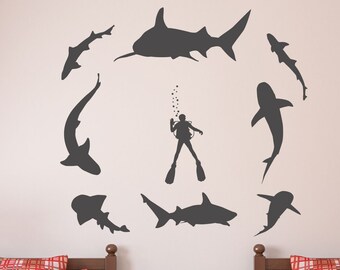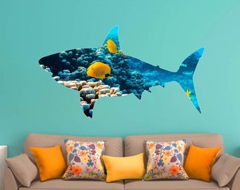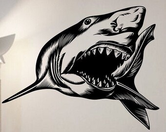 Shark, shark decal, shark sticker, shark wall decal, great white shark, shark wall art, underwater decal, shark week, boy room decor, beach