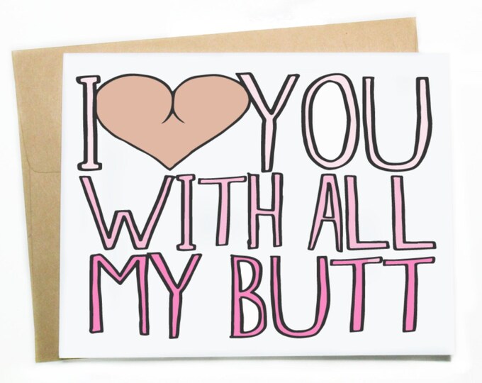 Funny Valentine's Day Card: I Love You With All My Butt - I Would Say Heart, But My Butt Is Bigger