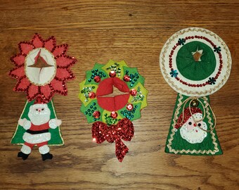spring trio - tulip, daffodil, crocus - hand sewn felt hair clips