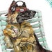 - Materials: denim body, snap noses, cotton clothes, embroidered face, ribbon, safety pin, Velcro clothes closures, buttons, rick rack, polyester stuffing, love