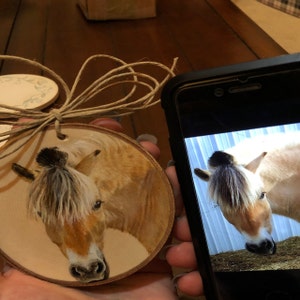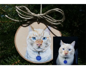 Custom pet portrait ornament on wood for wall or Christmas tree. Hand painted pet memorial. Pet's photo used, dog, cat, bird, horse