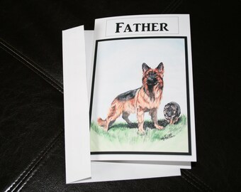 German Shepherd Father's Day card! Handmade pen and ink and watercolor painting, fine art card, dog Father's Day card.