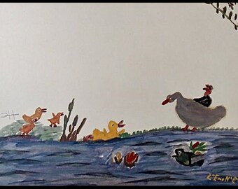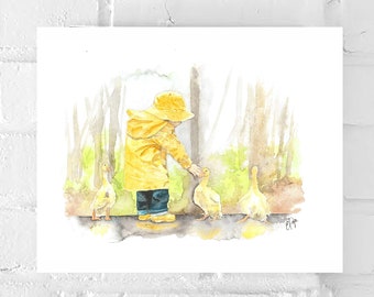Ducks Print, Two Ducks In Winter, Nursery , Art For Kids Room,