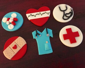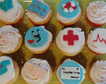 12 Fondant Medical Themed Cupcake Toppers