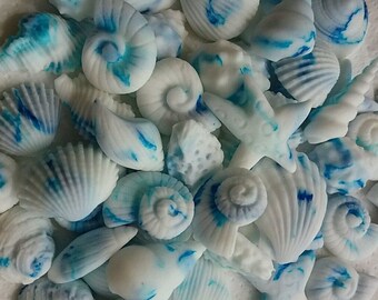 50 Shells Edible Cake Toppers Fondant Icing blue colour