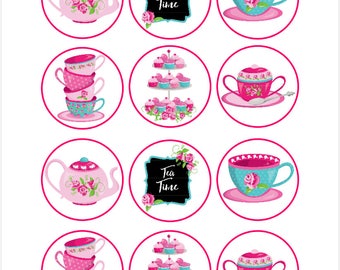 Edible Tea Party Themed Cupcake Cookie Toppers