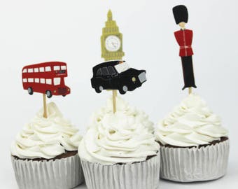 London Themed Cupcake, Cake Toppers (12)