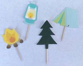 Camping themed cupcake toppers