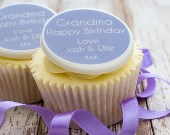 Grandma Birthday Cupcake Toppers. Grandma Gift. Granny cake decorations. Grandmother gifts. Granny gift. Edible sugar cup cake decorations.