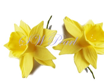 Daffodil Sugar Flowers Edible Wedding Birthday Cake Cupcake Toppers