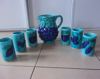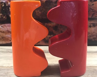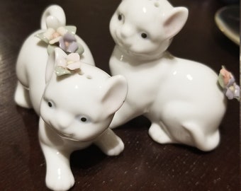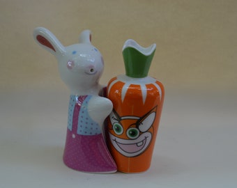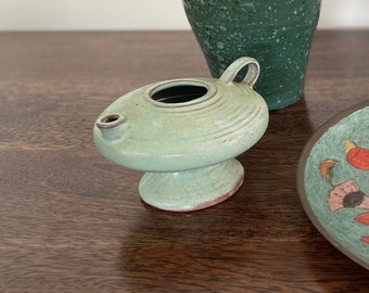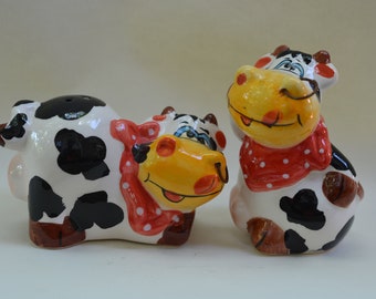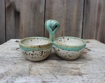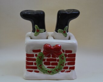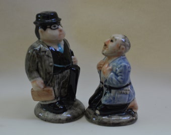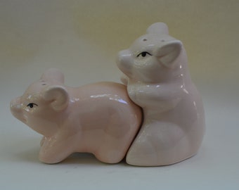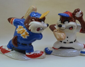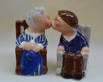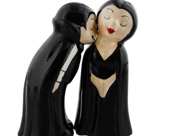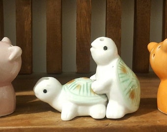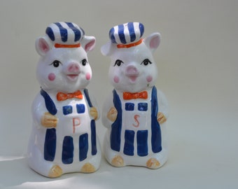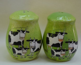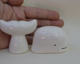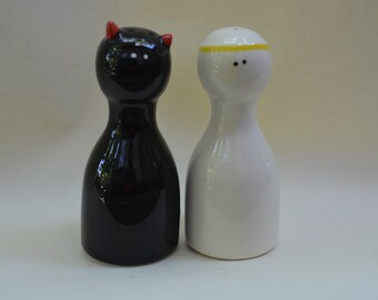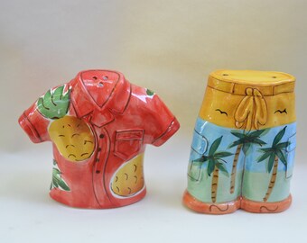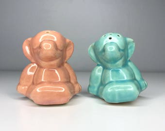 Vintage Salt & Pepper Shaker Set Aqua Turquoise Ceramic Typographic Words Retro