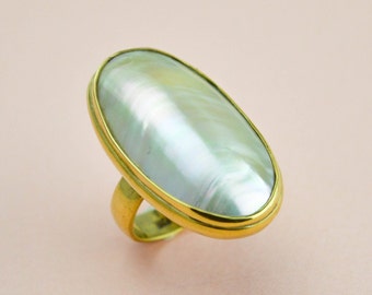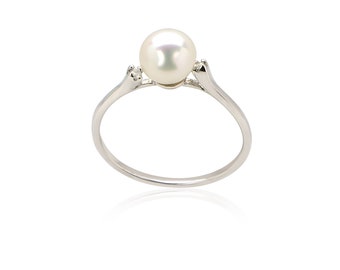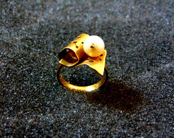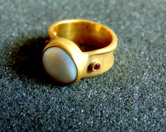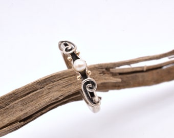 See moreBeautiful silver gold and white pearl ring-925 silver and 18k gold pearl ring- Pearl solitaire ring-Classic pearl ring for women-Greek art