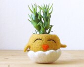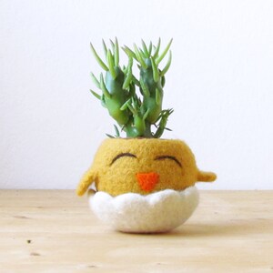 Funny indoor planter | happy chick succulent planter, cute mini felt cactus vase, Spring handmade decor, mother day gift for her