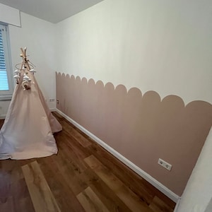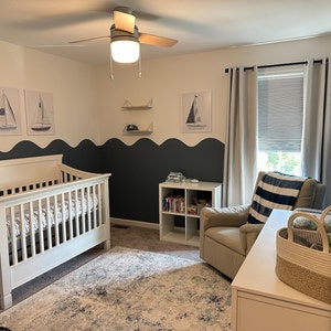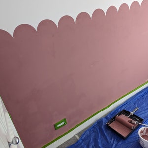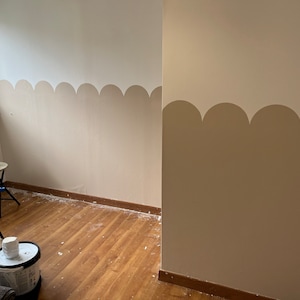 I love how this turned out! It was a touch difficult to do myself, but I just painters taped up the stencil and moved it down each time. Would have been hard if I had the smaller version, but thankfully I ordered the large one. I get compliments on this all the time.