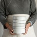 The bowl has many imperfections. I don’t mind that the pedestal base and bowl itself are lopsided, as it adds to the unusual charm. However, the white color/glaze pooled in an area of the bowl and dripped down the inside and outside of the bowl, which looks terrible and very sloppy. The bowl is not worth the price I paid. Additionally, the packaging of the bowl wasn’t very professional, but the item arrived intact. It took awhile to get the bowl, but that was disclosed by the seller at the time of purchase. I will look into returning the item and I will not purchase from this seller again.