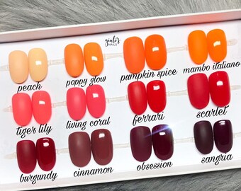 There are 12 nails in each set in sizes 0 to 9. They are full cover press on nails and they will fit most average size nails. They come with a nail file so you can trim them down if they are too big.