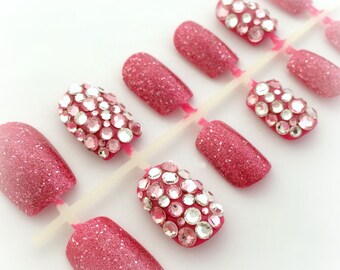 Pink bling deco nails, cute princess press on nails, kawaii Harajuku style nail art