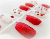 Cute cherry nails, red glitter press on nails, cute nail set. cherry nail art, gift for her, women accessories