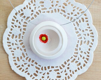 Original poppy necklace White necklace Red poppy clay necklace Valentines day gift Christmas gift Girlfriend present Best gift for her