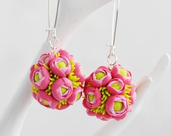Pink flower earrings Boyfriend gift Girlfriend present Dangle floral earrings Polymer clay earrings Christmas gift Best gift for her