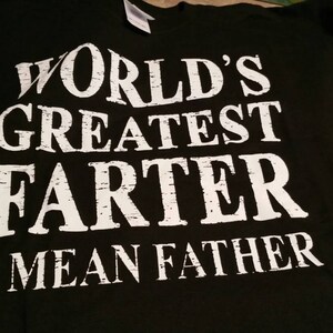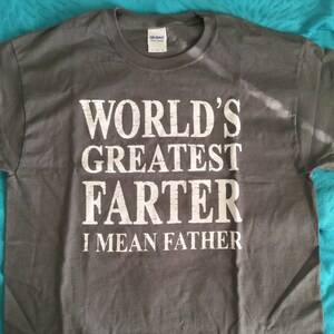 See moreWorld's Greatest Farter, I Mean Father T Shirt. Funny Father's Day Shirt. Father's Day Gift Idea. Cute Gift From Kids. Large XL 2XL 3XL.