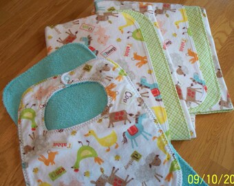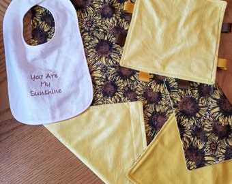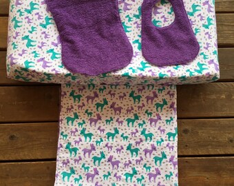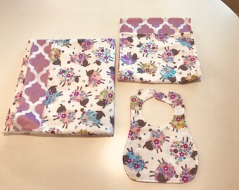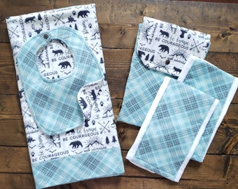 MODERN LEAF ORGANIC BABY GIFT SET. A Modern Leaf blanket, bib and burp cloth.