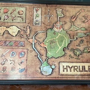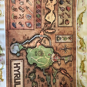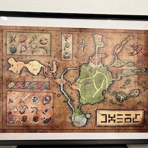Map of Hyrule from Legend of Zelda, Ocarina of Time - English or Hylian, Zelda Map, Hyrule Map 11x17 or 13x19 or 17x25