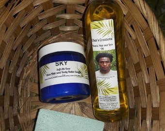 Can be used on your hair, beard, locs and skin. Apply to dampened skin, hair, locs, beard and mustache to soften and condition and lock in moisture. May be used on dry skin and hair as well to add sheen and luster.