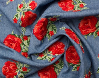 Cotton canvas denim embroidered with Haute Couture flowers
