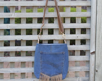 Upcycled Jeans Crossbody bag - Upcycled canvas and denim bag - Free UK Shipping