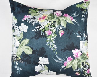 Navy Floral Canvas Pillow Cover