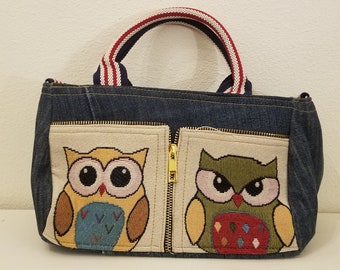 Denim Handbag Two Owl Design