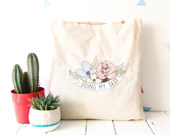 Doing My Best Floral Canvas Tote Bag