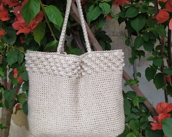 Summer woman handbag crochet bag, shoulder handles. Gift for her