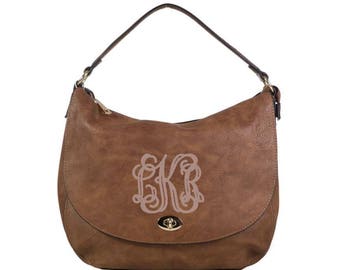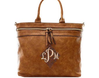 Camel Camilla Monogrammed Vegan Leather Purse- Personalized Brown Handbag - Camel Monogram Shoulder Bag - Embroidered Gift - Gift For Her